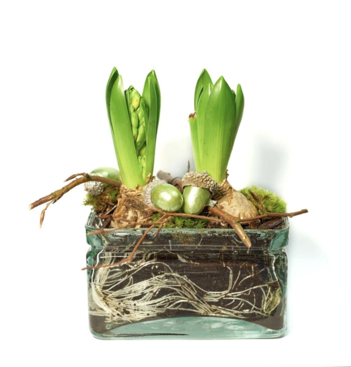 1. Hyacinty v mechu: mini les na stole